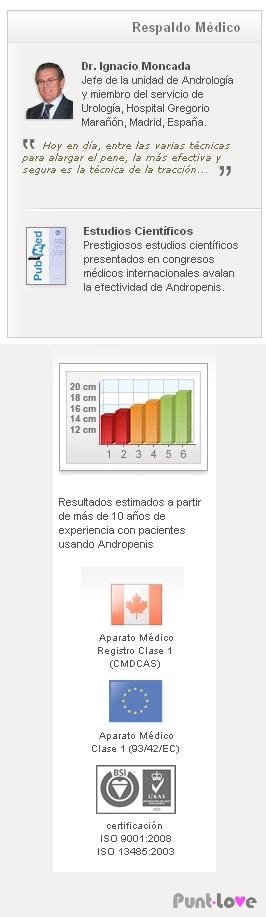 Alargue su pene 4cm. El AndroExtender es un producto sanitario basado en el principio de tracción, de los mismos fabricantes que el Andropenis® Está clasificado como Aparato Médico de Tipo 1, y ostenta la certificación sanitaria CE. Está garantizado por médicos.