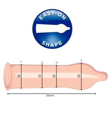 Lo natural más fácil. Preservativos transparentes con forma easy on, más largos y más anchos que facilitan su colocación, con forma anatómica que asegura la sujeción, lisos, con depósito y con aroma Zeus que enmascara el olor a látex.