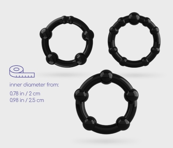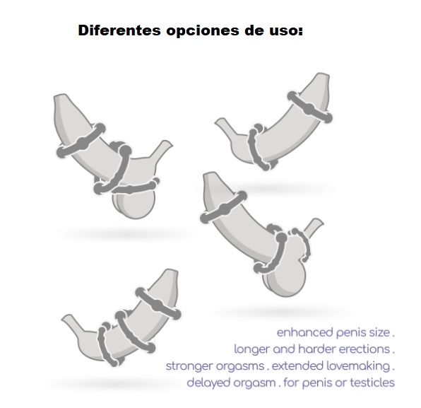 Intensifica tus erecciones y tenga más resistencia, estos tres anillos se pueden usar juntos o por separado. Pruebe diferentes combinaciones y déje que el agarre firme estimule sus sentidos.