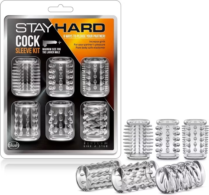 Con este Pack de 6 Fundas para el pene, tendras... Más textura. Más estimulación. Más placer. Descubre nuevas formas de disfrutar con el kit de fundas Stay Hard de Blush. Estas fundas elásticas y transparentes están diseñadas para envolver tu pene o juguete favorito con texturas únicas que intensifican cada roce y cada movimiento.