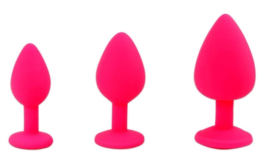 Set 3 plugs anales. Son increíblemente lisos y no porosos. La punta cónica facilita la inserción, mientras que el cuello es acanalado para aumentar el placer. Ideales para aquellos que se quieren iniciar en la práctica del sexo anal, con tres tamaños diferentes: el pequeño, el mediano y el grande para ir gradualmente.